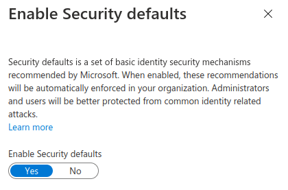 - Jetzt lassen sich die ‚Security Defaults‘ ein- oder ausschalten.