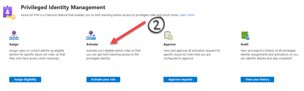 Kurt hat Glück und er wurde vom Azure Administrator bereits als eine der Personen definiert, die sich ‚Teams Administrator‘ Rechte bestellen dürfen. Alle Rollen, für die er berechtigt ist werden im Portal angezeigt. Also wählt er die Teams Rolle aus und klickt ‚Activate‘.