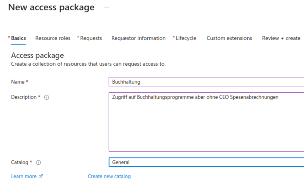 Create an ‚Access package‘