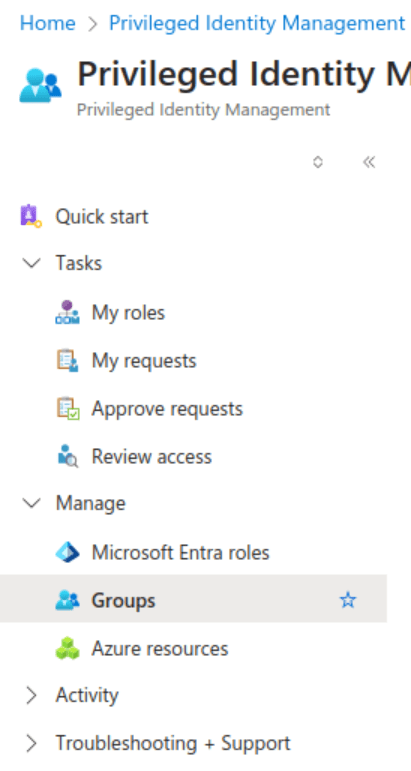 - Wir wechseln jetzt im Entra zu ‚PIM‘ und gehen dort zu ‚Groups‘