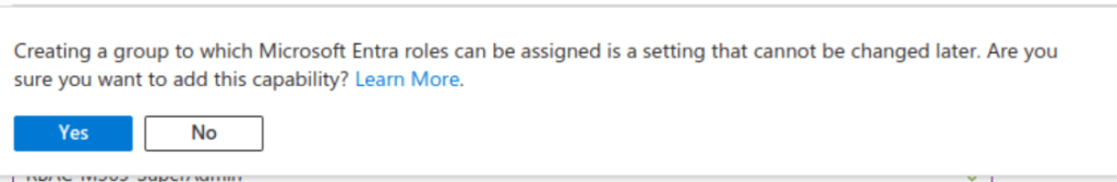 - Der Reiter ‚Microsoft Entra Roles‘ can be assigned to this group muss auf ‚Ja‘ gestellt werden